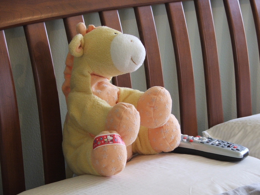 Confined to bed, watching TV