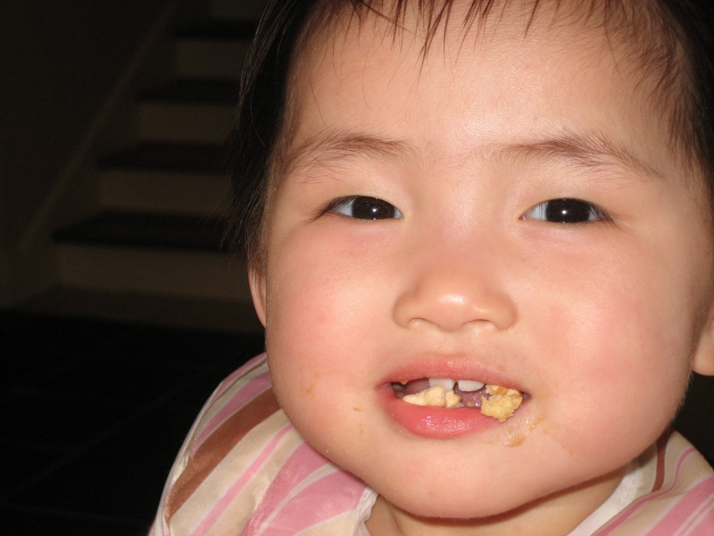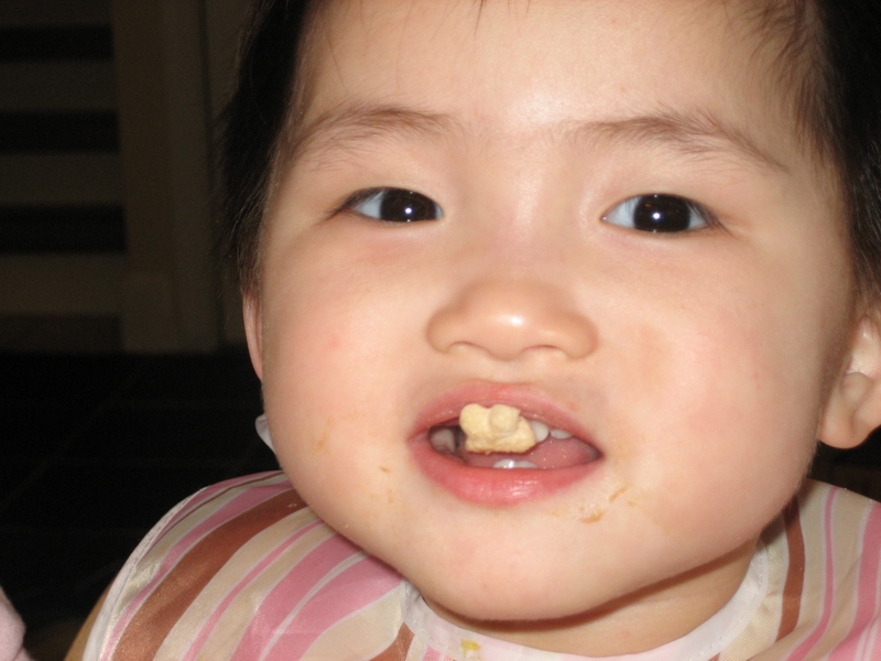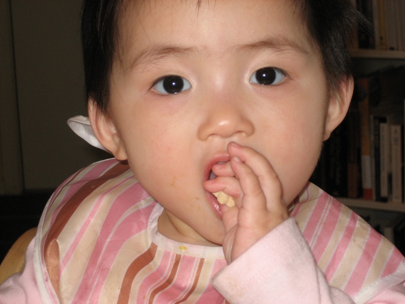 Eating Cheerios on her own