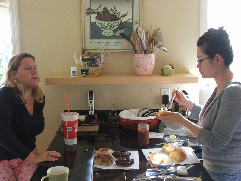 Breakfast, donuts, croissants, and fig jam...